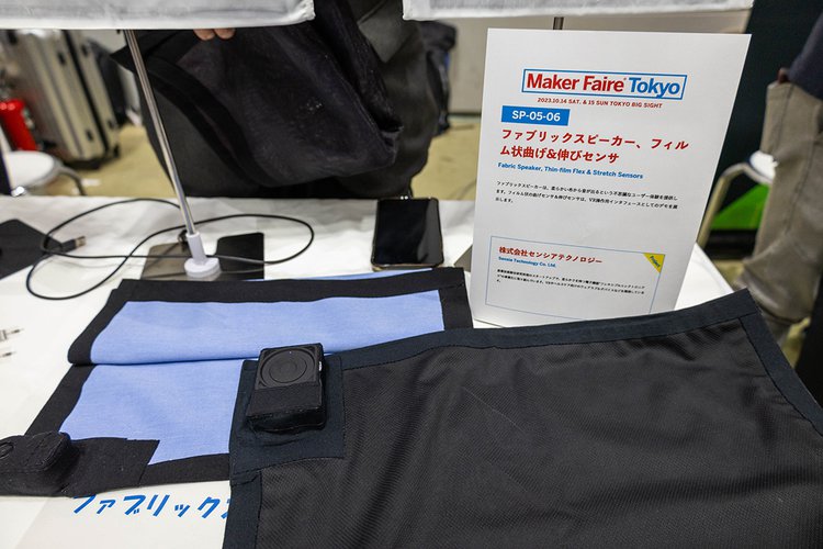 ハンカチくらいの分厚さの布から音楽が再生される。布団や枕カバーなどにも応用可能?