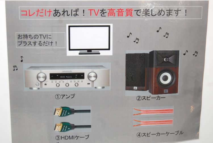 「コレだけあればテレビを高音質で楽しめます」と説明を掲げてテレビの音質アップをアピール