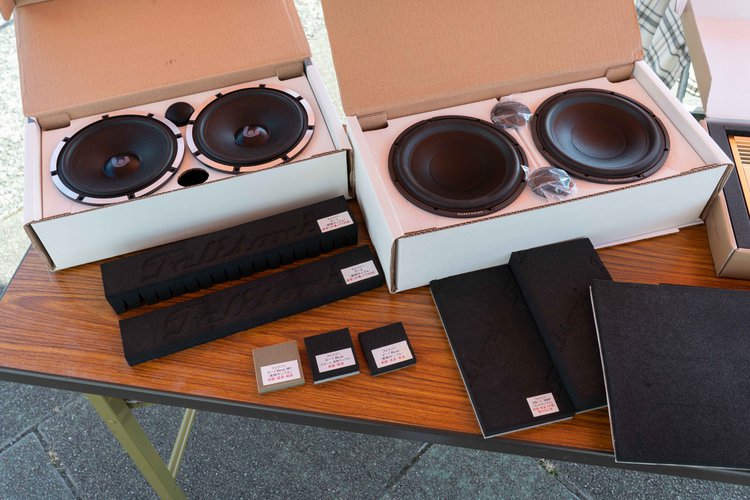 QUARTORIGOのスピーカーユニット。吸音アイテムも並ぶ