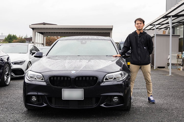 新しいカーオーディオショップ「LAVID」をオープンした佐々木さんとBMWのデモカー