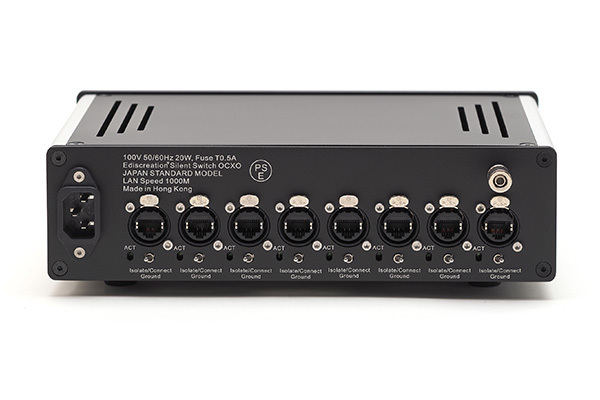 SILENT SWITCH OCXOは、ルーターからのグランドノイズの遮断やシステム内で起こるグランドループを容易に回避できるグランドアイソレーション・スイッチを全入出力に装備する