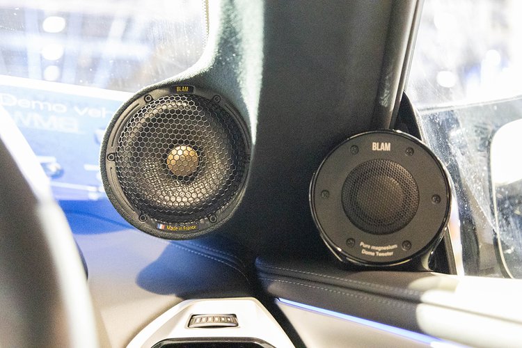 BLAMのトゥイーターとミッドレンジはピラーに装着。トゥイーターは「TSM25MG70HR」、ミッドレンジは「MS3Multix」を使用