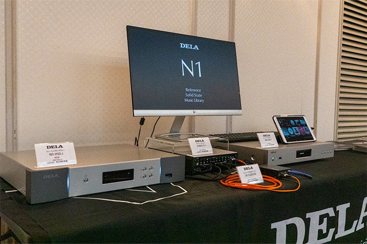メルコシンクレッツのブランドDELAは、ミュージックライブラリの新モデル「N5」をはじめ、ネットワークスイッチ「A100/2」や光アイソレーションを手軽にできる「OP-S100」などを組み合わせた