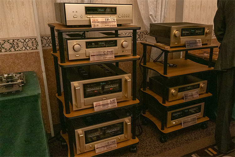 アキュフェーズは、純A級ステレオアンプを搭載した「E-700」やSACDプレーヤー「DP-770」といった最新モデルを中心に展示