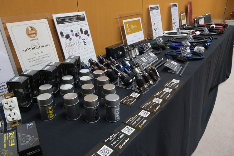 オヤイデ電気の多岐にわたるケーブル、アクセサリー、自作パーツなどが一斉展示