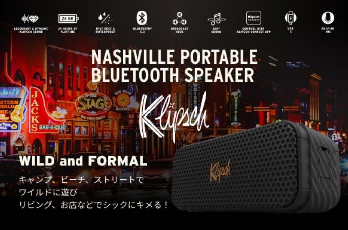クリプシュ初のポータブルBTスピーカー「MUSIC CITY SERIES」。両面スピーカー「Nashville」など3機種