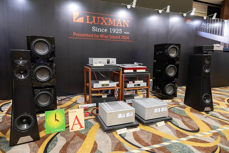 ラックスマンの主力ラインナップも強力にプッシュ。後ろに見えるのはイギリス・REL Acousticsのスピーカー