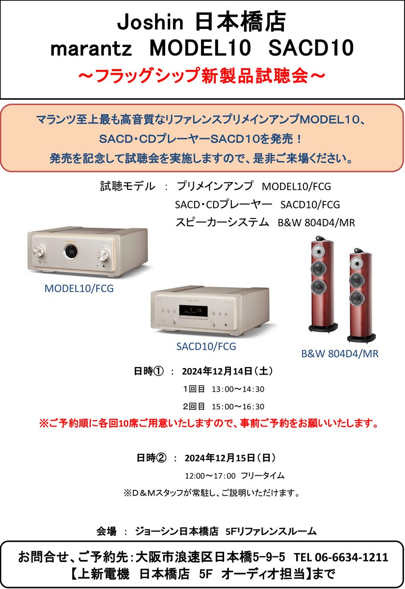 オーディオスクエアトレッサ横浜店、マランツ新フラグシップ「MODEL 10」「SACD 10」発売記念試聴会を11/16開催