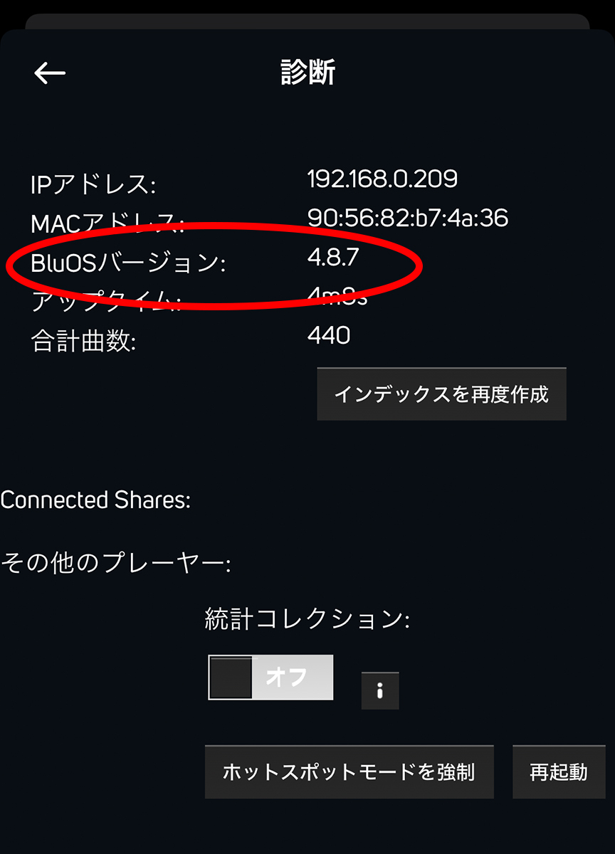 最新のBluOSバージョン「4.8.7」へのアップデートが必要