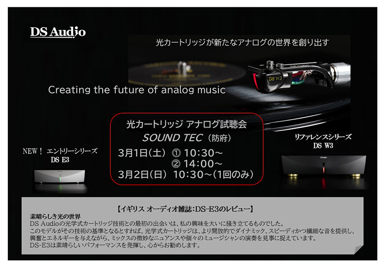 サウンドテック、DS AUDIO光カートリッジ試聴会やECLIPSEイマーシブサウンド体験会など3月より順次開催