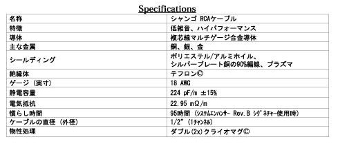 SHANGO RCA CABLEの仕様