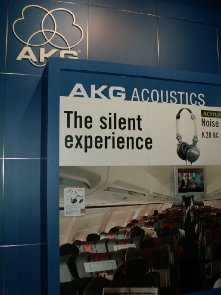 AKGのノイズキャンキャンセリングヘッドホンK28NCの展示パネル。もちろん試聴も可能