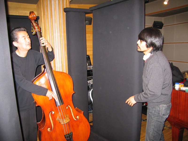 鈴木良雄氏のスタジオでサウンドスフィア技術を解説される片岡教授