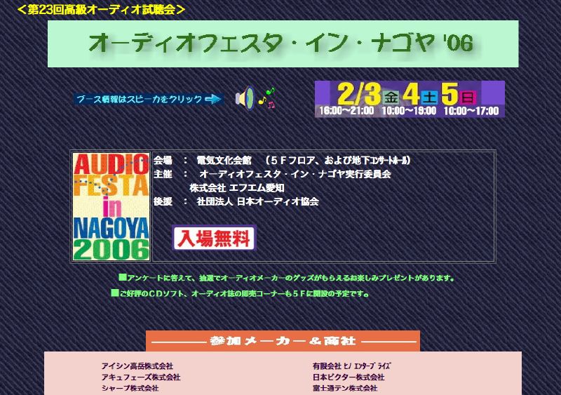 「オーディオフェスタ・イン・ナゴヤ 2006」のウェブサイトが開設