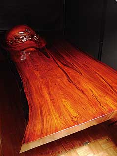 木のぬくもりと味わいが素晴らしい大テーブルなどを多数展示