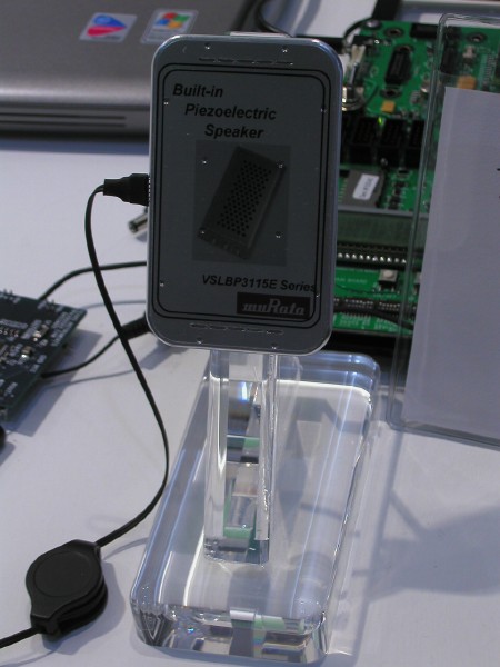 ムラタセイサク君に装着されていたスピーカーの単体はこちら。こういう会場だから音量はささやかなものだが、素性の良さは明確に聴き取ることができた。超ワイドレンジ・トゥイーターとして有望なのでは