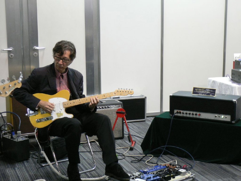 テレキャスマスター徳武氏。右に見えるギターアンプも中村製作所の試作品