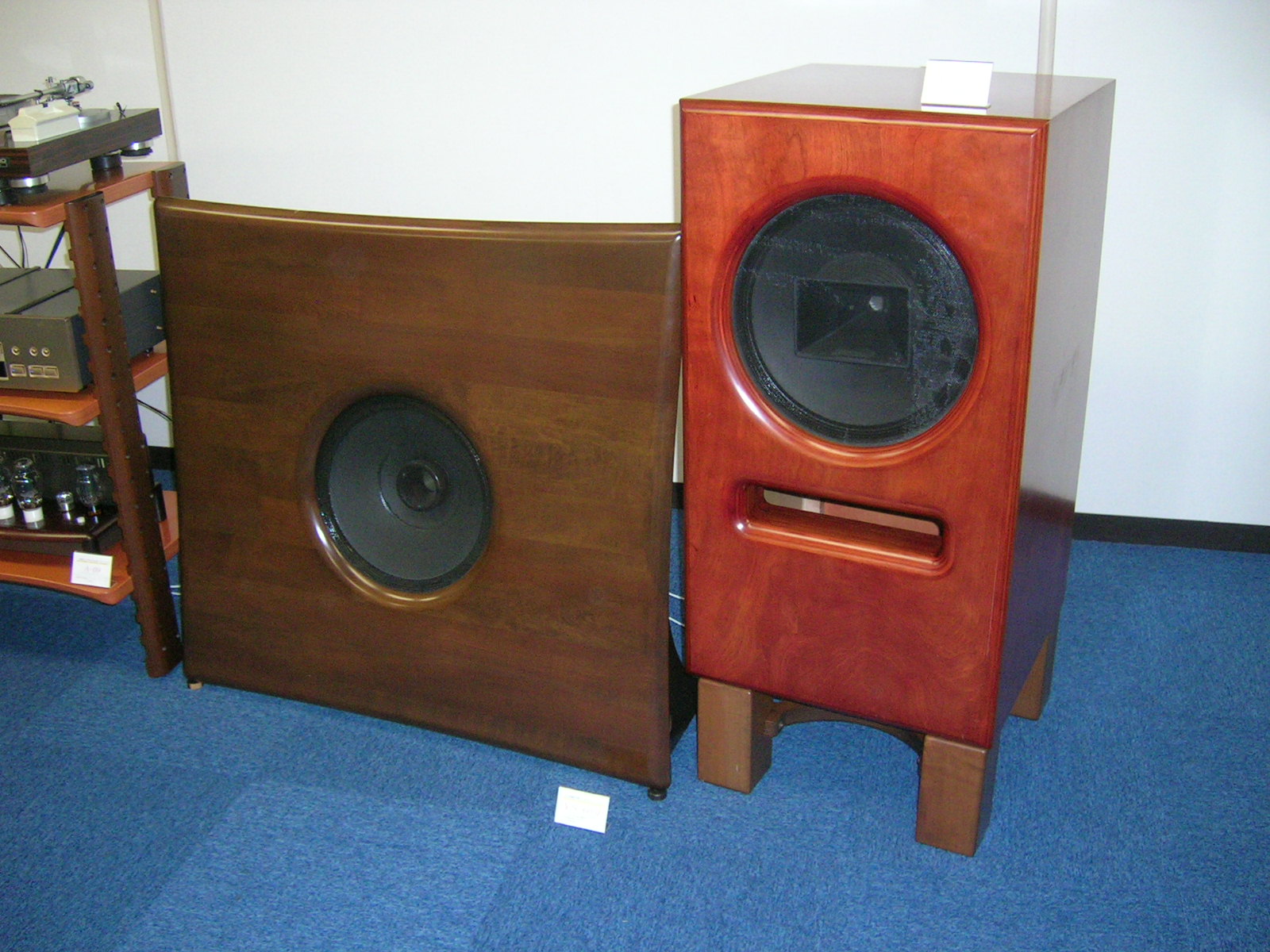 山本音響工芸のスピーカー「YS-605P」(左)と「YS-604」(右)。個性派スピーカーが集まるのもこのイベントの醍醐味だ