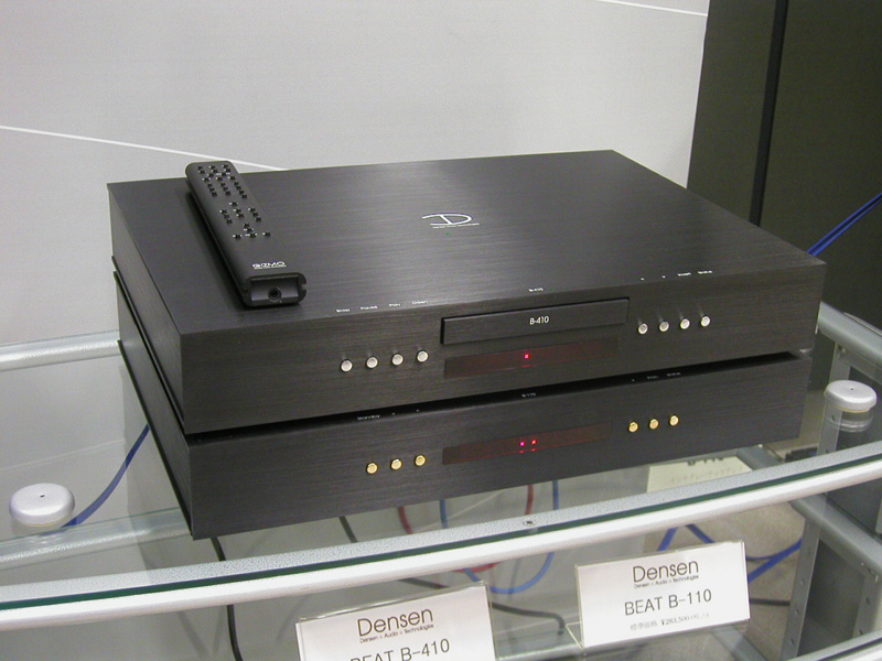 デンセン社のプリメインアンプBEAT B110の上に載せられた新製品CDプレーヤーB410。プッシュスイッチの色が違うが、B410も最終製品はゴールドに統一されるという