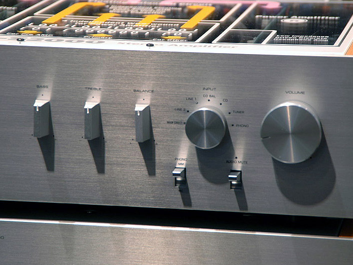 フロントパネルの操作ノブの形状など、随所に往年の銘機を髣髴とさせる意匠が組み込まれている(A-S2000)