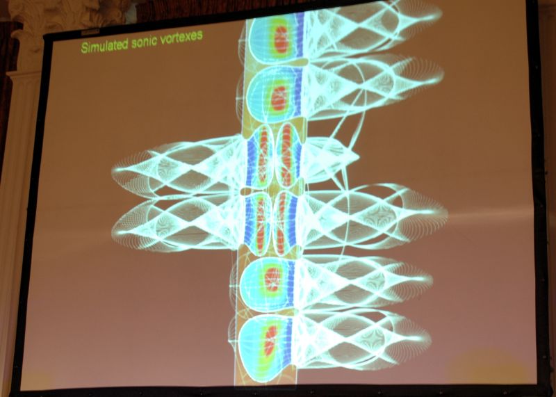 設計はコンピュータで行う。ユニットから発した音を解析した図
