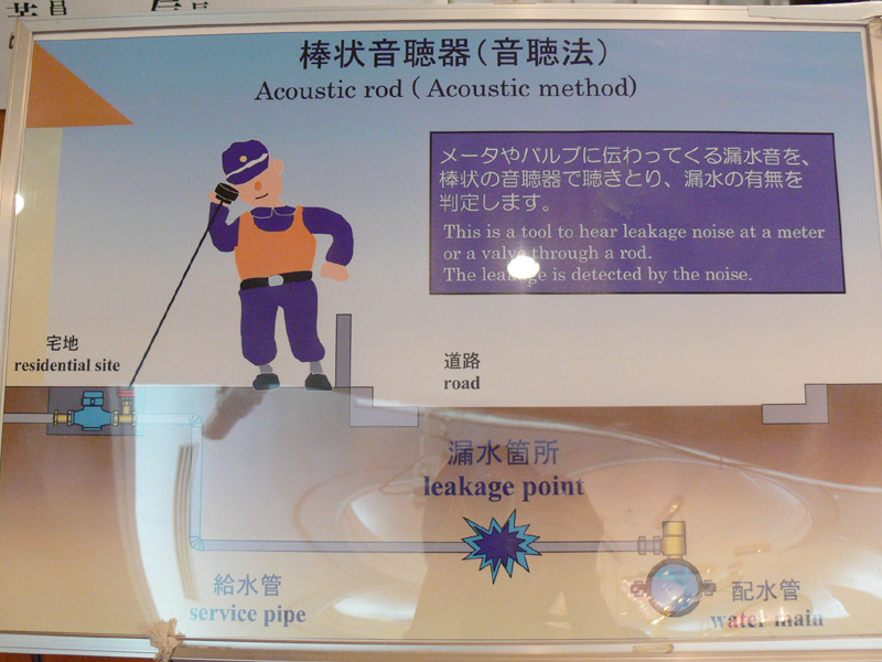 昼間は棒状音聴器を用い、漏水場所を絞り込む