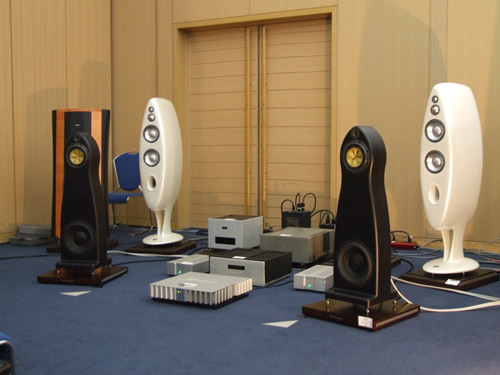 J Roomの展示品の一部。AUDIO MACHINA「The PURE system」は九州のイベントでは初登場。反対側にはHARBETHの製品がずらり