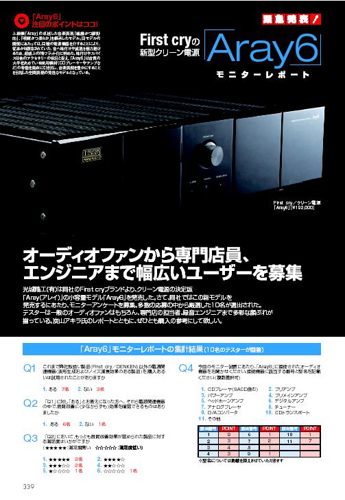 First Cryの新型クリーン電源「Aray6」モニターレポートをAA129号に掲載中!