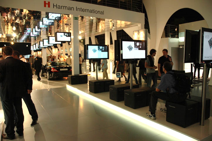 Harmanのブース入口。つねに大勢の来場者で賑わう