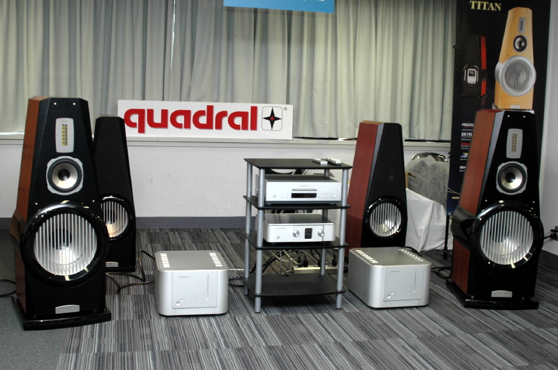 EルームはQUADRALのスピーカーシステムが一同に集結。「TITAN VII」も登場