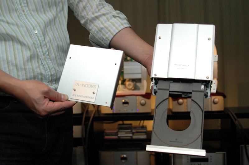右がマランツ独自開発の「SACDM-10」。左は開発段階で使用していたトッププレート
