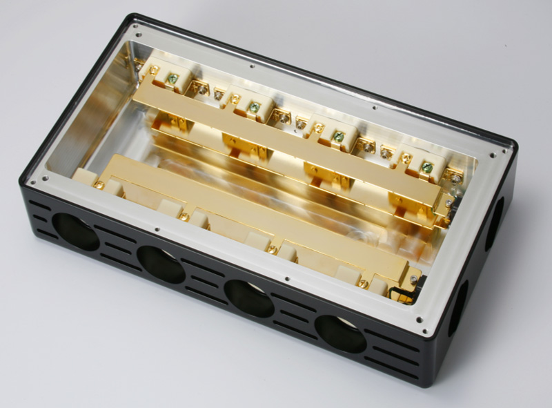内部には20mm幅の一体型銅プレートと金メッキバスバーを採用