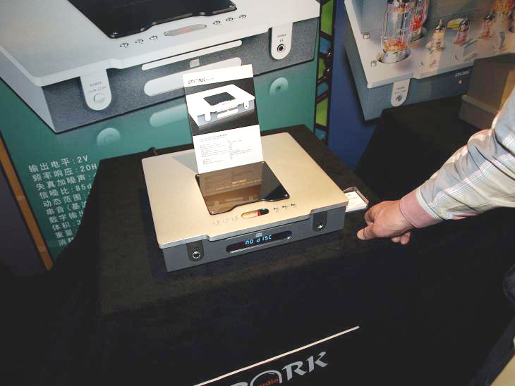 1993年創業のスパーク(カイン)ブランドは今年で15周年を迎え、賑わいを見せていた。真空管アンプを中心にコンパクトで高品位な製品が揃う。写真は12AU7を搭載したCDプレーヤー「MT-CD40」
