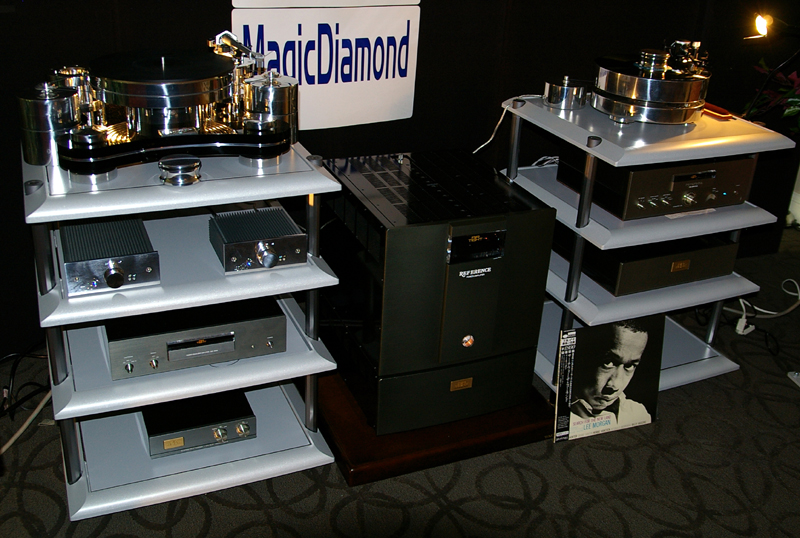 中央に置かれているのが、パワーアンプ「ATM-2001S」。ヨーロッパのディーラーからのリクエストで、今回持ち込まれたとのことだ