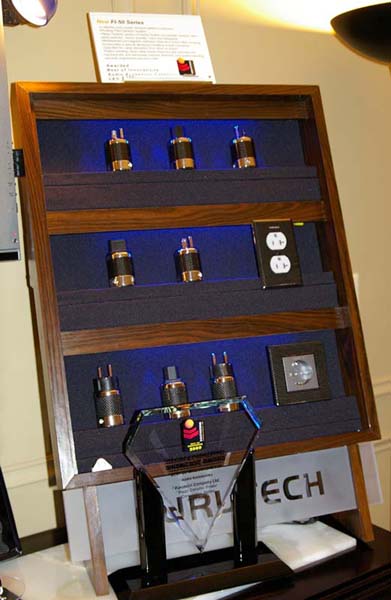 各種電源プラグなどをディスプレイ。手前に置かれているのが、「The Best of Innovations 2009 CES」の楯である