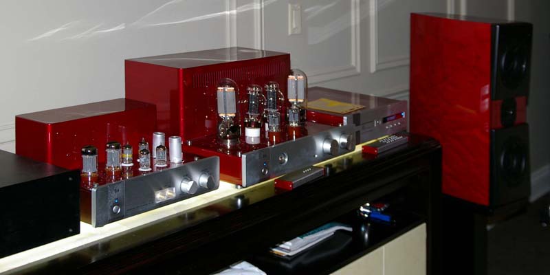 赤いシャーシのTRV-845SEは、大型出力管845を2本使用している