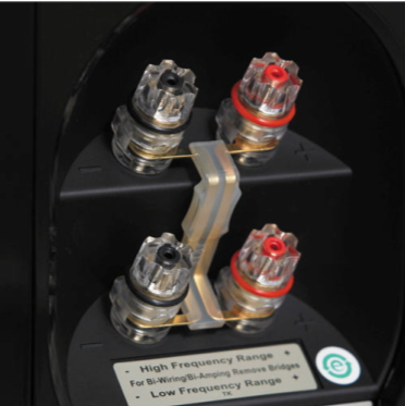 スピーカー端子はELACオリジナルのターミナルを採用。ジャンパープレートヴァン・デン・ハル製のジャンパーケーブルも付属する