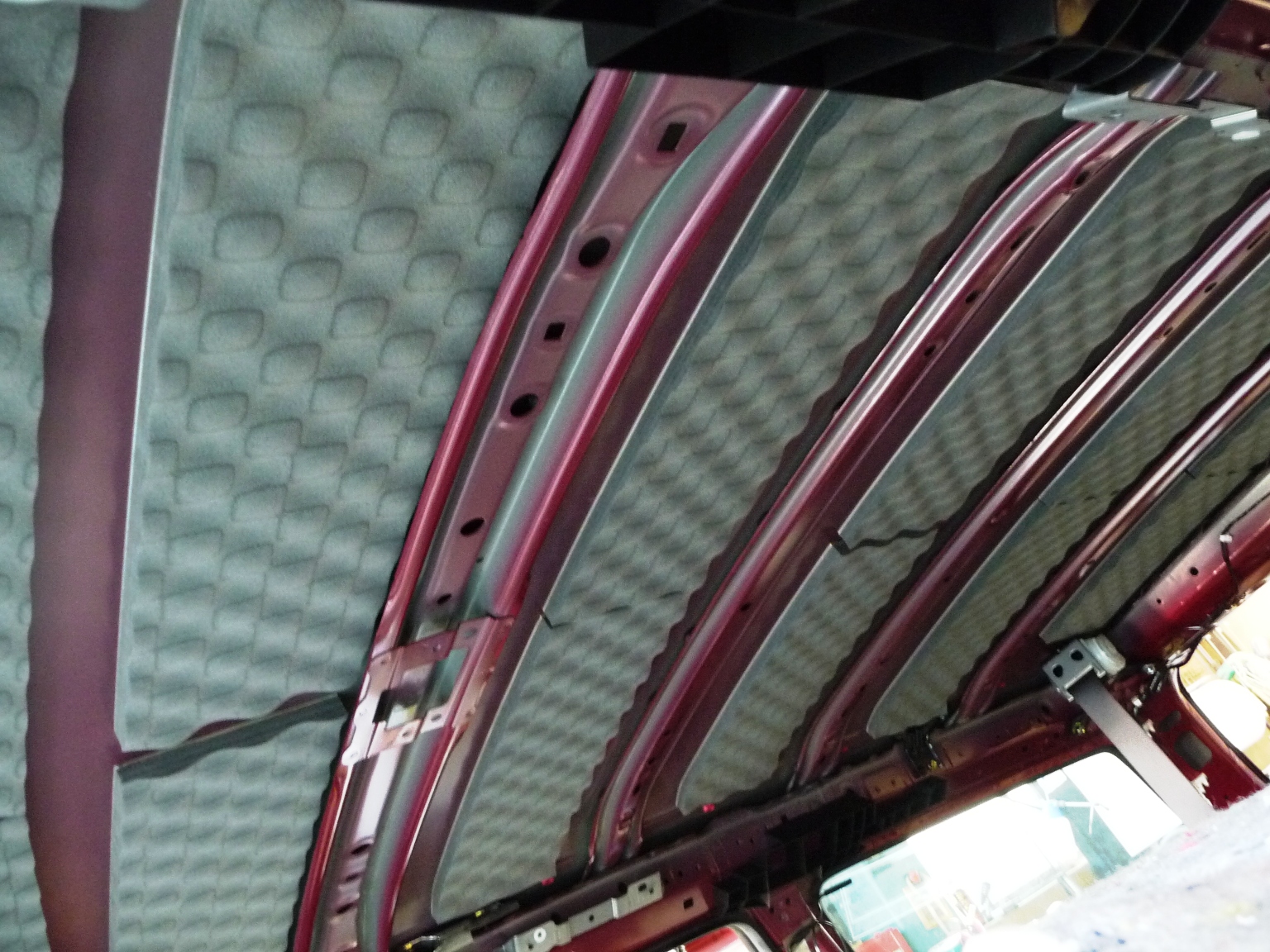 レアルシルト・アブソーブを車内ルーフに貼合したところ