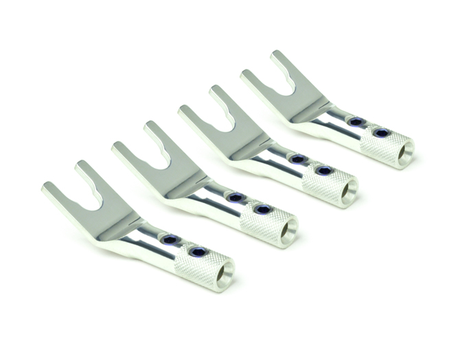 先に発売のバナナプラグ「SRBN」の姉妹モデル、純国産銅合金にシルバー+プラチナメッキを施したYラグ「SPSL」