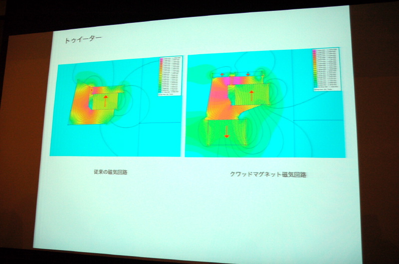 従来の磁気回路(左)と今回の磁気回路(右)の磁束を表した図