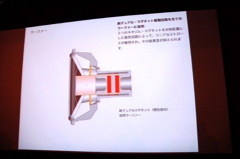 ウーファーはネオジウムマグネット2つを対称配置にした「デュアルマグネット」構造を採用