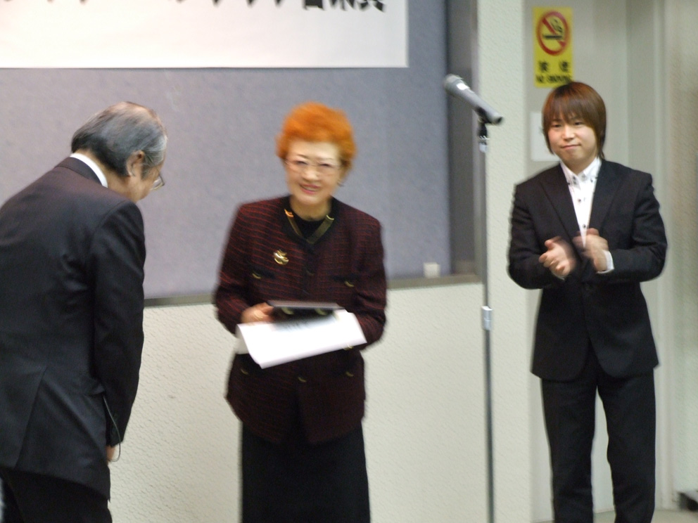 マーサ三宅さんは「この賞は録音賞なので、録音を手掛けた金野貴明社長にお祝いするつもりで今日は参りました。いつまで歌えるかという思いをこめて歌いましたが良い作品に仕上げていただき、賞もいただけて感謝しております」と述べた