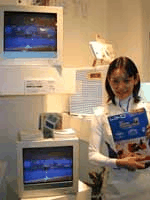 HOME > ニュース > <EXPO/AV>日立ブースにかわいいテレビ発見 <EXPO/AV>日立ブースにかわいいテレビ発見 公開日 2000/11/17 15:46 かわいいテレビ●カラフルなテレビというのは今までなかったような気がするが、HITACHIのブースに行くと宇宙的なお姉さんとともに四角い装飾物が飾ってある、のかと思ったらテレビだった。 テレビに思えないかわいい物体がカラフルで楽しくて、やっぱりこれからのインテリアはかわいくないといけないね。上が平らなのが意外と便利で、植木とか置けるし、ポータブルDVDプレーヤーを置いたりできる。でも、ピンクがないのが残念だ。(伊藤竜太) この記事をシェアする