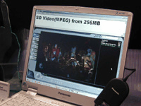 SD共同ブースで松下電器は、256MBのSDカードで動画を再生するデモンストレーションを行った。256MB版は今年登場する予定。