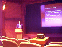 <写真右>ドルビーデジタルのエンコードシステム、バージョン7.0についてレクチャーする、スティブ・バーノン氏