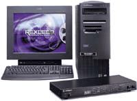 ベースマシンにはデュアルプロセッサ搭載の「IBM IntelliStation」を採用。DVRexの能力が十分発揮できるCPUパワーと長時間のビデオ編集にも耐えうる冷却システムを備えており、プロユースとして高く評価されている高性能ワークステーションである。洗練されたデザインでクリエイターのこだわりさえも満足させる。 REXCEED MODEL1000では、Pentium III 1.0B GHz Processor (Dual) とメインメモリ512MB、ハードディスク18.2GBを搭載している。(Phile-web編集部)