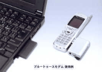 発売予定のブルートゥースモデムは、 H"に接続するアダプタと、パソコンのPCMCIAカードスロットに挿入するPCカードとのセットで、従来ケーブルを介して接続していたH"とパソコンの間を、ワイヤレスにできる。 たとえばH"を鞄やポケットに入れたままでも、快適にホームページ閲覧やメールの送受信が可能となり、64kbps高速通信の利便性がさらに向上。両社ではお互いの強みを活かして、H"対応ブルートゥースモデムの拡販とデータ通信利用者の拡大に協力して取り組み、市場をリードしていく。
