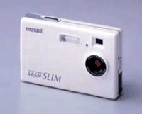 薄さ18.7mm(突起部を除く)、重さ約78g(電池を除く)というスリムでコンパクトなカードサイズを実現。これによってポケットやポーチにスッポリ収めることができる。また、新開発の薄型マルチコート4枚構成ガラスレンズを採用し薄型カメラでもクリアな画像を撮影できる。さらにEメールやWebページに最適なVGAサイズ(640×480ピクセル)のJPEG圧縮ファイルで記録する。ストロボ・マクロモード・セルフタイマーを搭載し機能面も充実。 (ホームシアターファイル編集部)