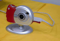 ライブビデオ画像のPCカメラ機能と、デジタルカメラ機能の2つの機能を組み合わせた。カラーバリエーションは3色。ブルー、レッド、イエローが揃えられた。価格は実売で1万円を切る予定で、発売は夏になりそうだ。