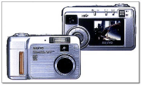 【SPEC】●撮像素子: 1/1.8型原色プログレッシブスキャン方式CCD、総画素数約211万、有効画素数約200万 ●記録媒体: コンパクトフラッシュ(TYPE I/II) マイクロドライブ ●記録画像ファイル:フォーマット 静止画:JPEG形式、TIFF(非圧縮形式) DCF※3、DPOF※4準拠 動画クリップ:QuickTime Movie(Photo-JPEG)、音声:WAVE(モノラル) ●レンズ: f=7.25mm〜20.3mm(35mmフィルム換算35mm〜98mm) オートフォーカス F2.8(W)〜F4.8(T) ●撮影範囲: マクロ:10cm(W)/25cm(T)〜50cm 標準:50cm〜∞ ●シャッタースピード: 静止画:16〜1/1000秒(フラッシュ発光時1/40〜1/1000秒) 連写・動画クリップ:1/15〜1/10000秒 ●デジタルズーム: 撮影時:最大5倍([160]モード時) 再生時:最大31倍([2000]モード時) ●露出制御: プログラムAE/シャッター優先/絞り優先/マニュアル ●露出補正:±1.5EV(0.5EVステップ) ●感度設定: オート:ISO100〜200相当、マニュアル:ISO100/200/400相当 切り替え式 ●ホワイトバランス: オート:フルオートTTL、マニュアル:5モード切り替え式 ●フラッシュ: 内蔵調光式(自動/強制発光/発光停止/赤目軽減) 強制発光時スローシンクロ可能 ●音声: マイク:内蔵モノラル スピーカ:内蔵モノラル ●液晶モニタ: 約11万画素1.8型低温ポリシリコンTFTカラー液晶 ●ファインダ: 実像式光学ズームファインダ ●インターフェース: AV出力(映像:コンポジットビデオ NTSC/PAL対応 / 音声:モノラル) USB(ストレージクラス) ●外形寸法:106(W)×63(H)×41(D)mm ●質量: 約230g(本体のみ) ●付属品: 専用USB接続ケーブル、SANYO Photo Labo 5.4 CD-ROM、専用AV接続ケーブル、単3形ニッケル水素電池X2本、ニッケル水素電池充電器、ハンドストラップ